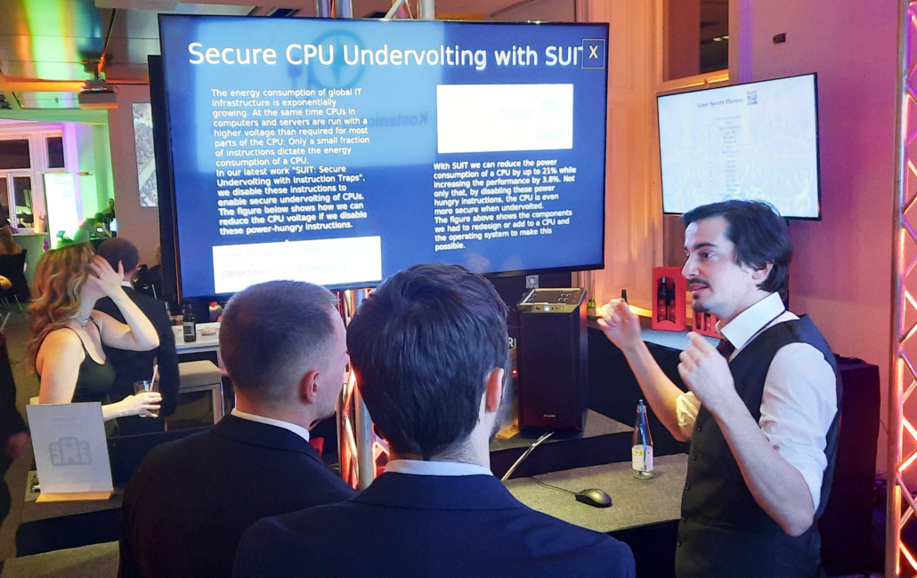 On the 26th of January we had the pleasure to be part of Ball der Technik. This year the theme was “Tanz der Algorithmen” (dance of the algorithms) and there was a focus on the research areas of computer science and biomedical technology at TU Graz and FH JOANNEUM. Florian Draschbacher, Lukas Maar,Florian Hirner, Florian Krieger and Hannes Weissteiner represented the IAIK at four booths with the topic “Insecurity of Today meets Security of Tomorrow”.