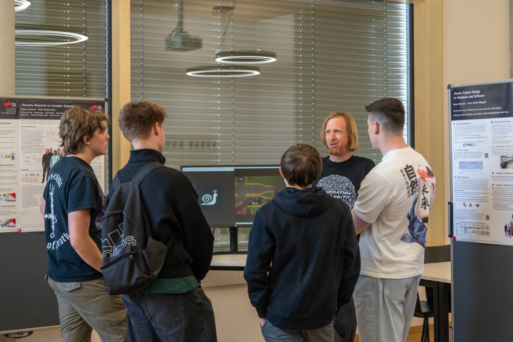 At the TU Graz Open Day, we welcomed students interested in cybersecurity into our seminar room and introduced them to our research. PhD Candidates Florian Draschbacher, Florian Krieger, Stefan Gast and the LosFuzzys student team provided interesting demos.